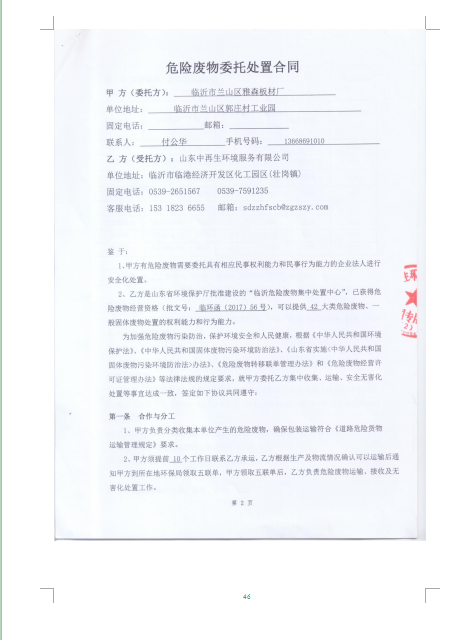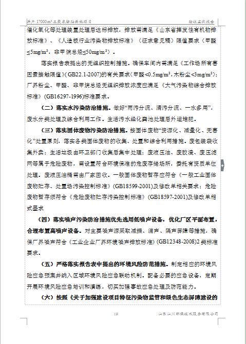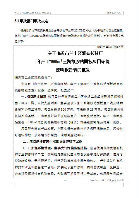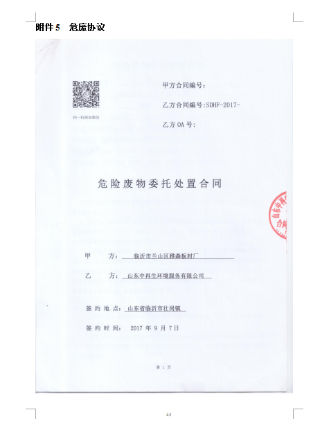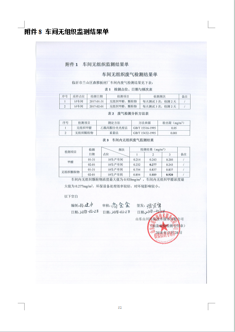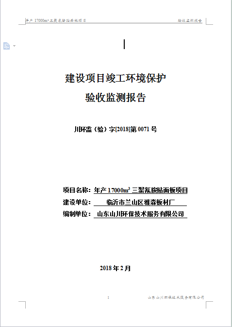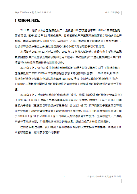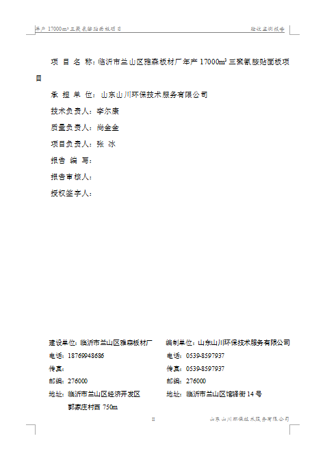 临沂市兰山区雅森板材厂验收监测报告